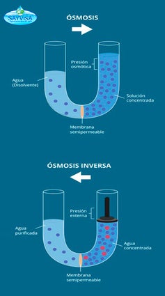 El proceso es simple: al aplicar presión, el agua atraviesa la membrana y se divide en dos corrientes: